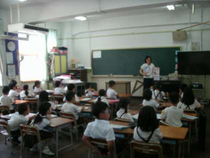 2時間目は各学級での指導です。1年1組は、2学期に使用する学習教材を配布していました。
