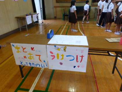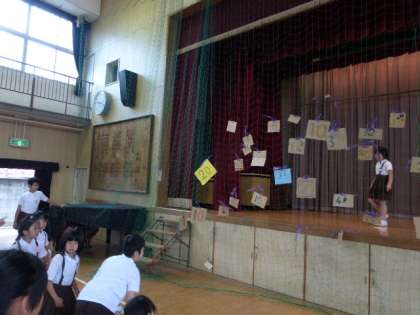 「まとあて」の様子です。あみにかかっている札をねらいます。