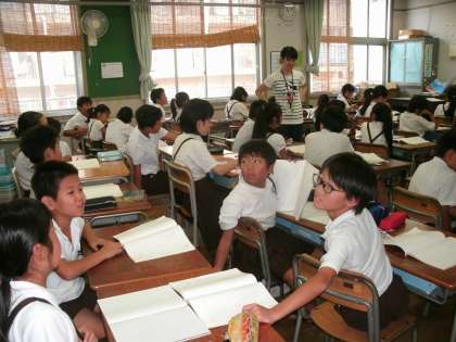 4年生は、国語の学習をしていました。金子みすずの詩「ふしぎ」を読んだ後で、自分が不思議だと感じることについて話し合っていました。
