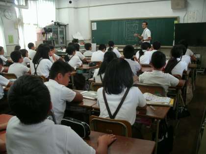 6年生は、国語の学習をしていました。「覚える」ということは引き出しの中に入れていくだけではなく、引き出しから取り出して活用することができるようになることだという話を真剣に聴いていました。