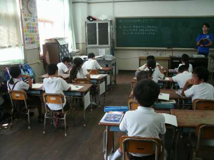校庭には、みんなで何人いますか。」という文章問題を解いていました。