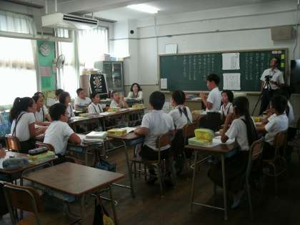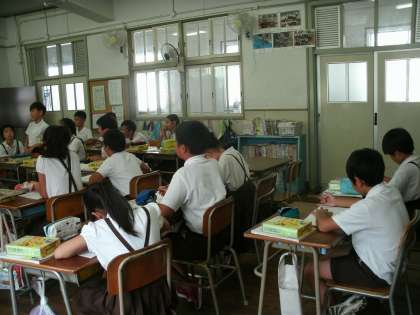 5年1組は、国語の学習をしていました。「夏休みの宿題の内容は自分で決めるべきだ。」という論題に対して賛成・反対・審判に分かれて討論をしていました。
