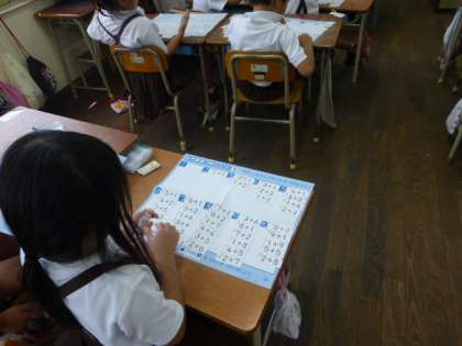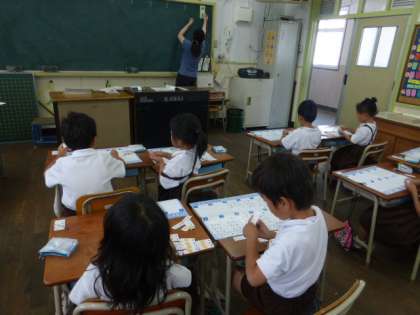 7月になりました。今日も暑い一日になりそうです。1年生は、「たしざんかあど」を使って、足し算の学習をしていました。