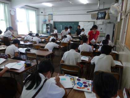 6年生は、算数の時間に一つの教室に集まって、「どんな式になるか考えよう」という単元を学習していました。
