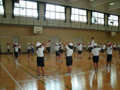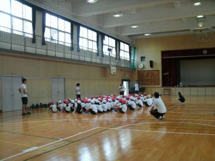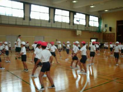 3・4年生は、体育館でダンスの練習をしていました。今日が練習の初日です。3年生は、少し緊張した表情で練習に臨んでいました。