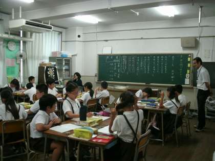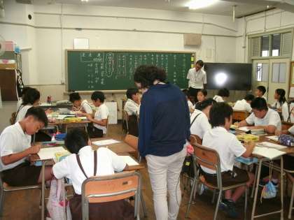 5年1組は、国語「詩の音を味わおう」を学習していました。行数や空白・音数などに着目して仲間はずれをさがしていました。