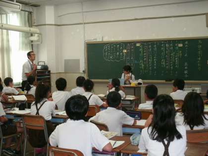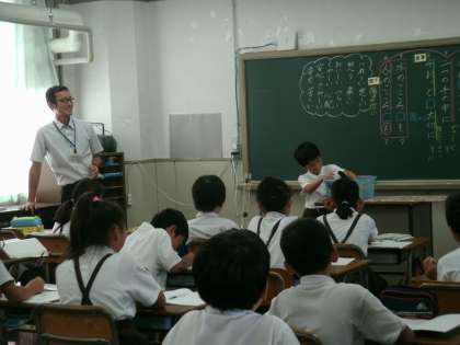 5年2組は、国語の学習をしていました。詩「水のこころ」から読み取ったことを動作で表現していました。