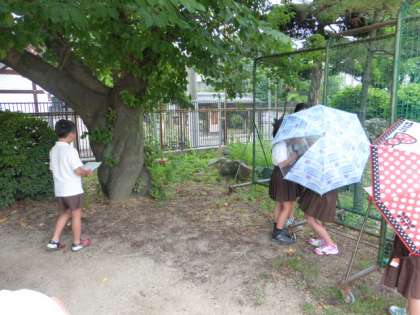 3年生は、理科の時間に、運動場に出て「夏の自然」を探して、観察カードに書いていました。