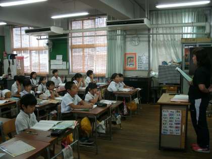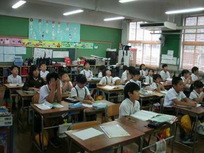 3年2組は、国語の学習をしていました。詩「夕日が背中をおしてくる」の暗唱をしていました。