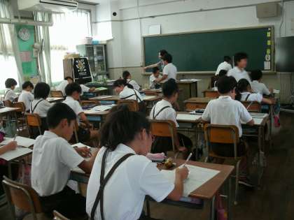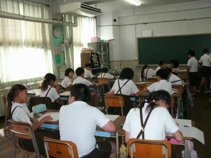 5年1組は、算数の学習をしていました。「倍数と約数」のまとめの練習プリントを各自で解いていました。自信のないところは確認しあって解いていました。
