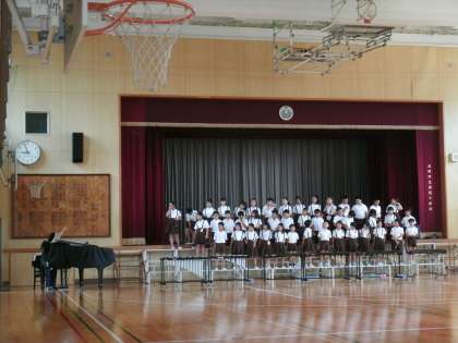 5年生は、講堂で音楽発表会の練習をしていました。練習の成果は、21日(金)の学習参観(高学年)で発表します。どうぞ、お楽しみに。
