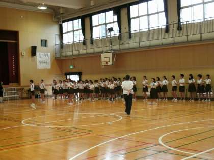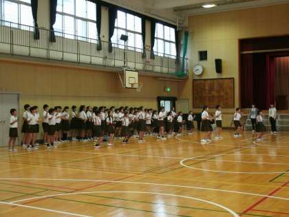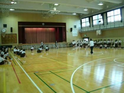 児童集会が終わり、1,2,3年生は教室にもどりましたが、4,5,6年生は講堂に残り、応援歌の練習をしていました。応援団を中心に、とても大きな歌声が講堂に響きわたりました。