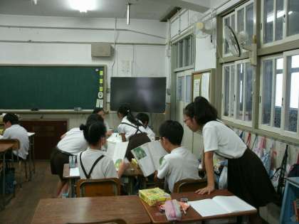 5年1組は、国語の授業をしていました。古文を声に出して読んでいました。周りの友だちに聞いてもらったり、聞いてアドバイスしたりしあっていました。すらすらと音読ができたら次は暗唱です。