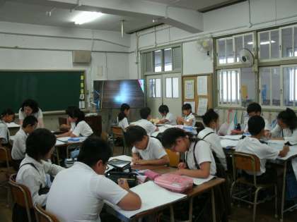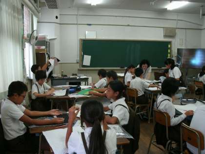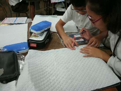 5年1組は、家庭科の学習をしていました。ナップザックを作成中です。