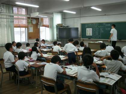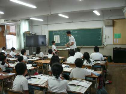 3年1組は、社会科の学習をしていました。商店街の学習で、スーパーマーケットとにているところ、ちがうところはどこか考えていました。「野菜を買ったら、その調理法を教えてくれる。」という意見が出たので、買い物客とお店の人の役になってやり取りを演じているところです。
