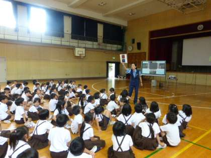 交通ルールやマナーについて警察の方からお話を聞いて、ビデオを視聴しました。信号をきちんと守ること。信号が青でも、大きな車が曲がってくるときは、注意することを教えていただきました。
