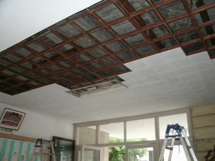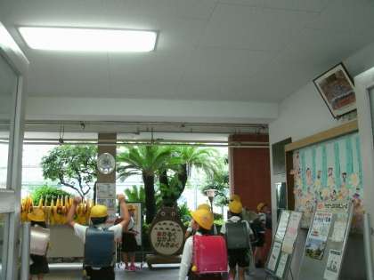 玄関ホール天井の修復工事が完了しました。久しぶりに正門から登校する子どもたちは、きれいになった天井を見上げながら、各教室に向かいました。