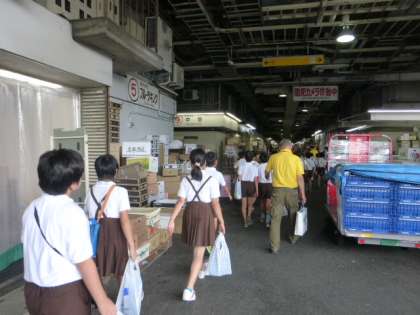 7月8日(火)蒸し暑い一日となりました。5年生は、野田にある大阪市中央卸売市場本場に、社会見学に出かけました。