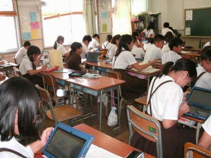 6年生は、修学旅行に向け、平和学習のプレゼンテーション用のシートを作成中でした。