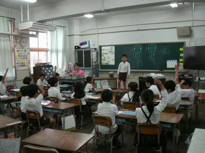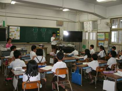 クラスの友だちや担任の先生に「ありがとう」を伝えていました。