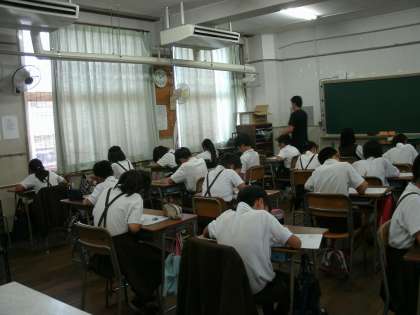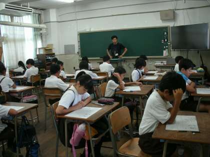 5年2組は、理科の学習をしていました。「台風と気象情報」のテストを始めるところでした。