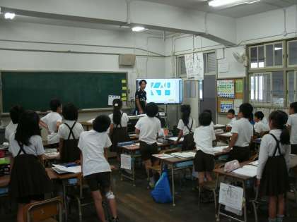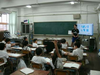 2年2組は、算数の学習をしていました。三角形・四角形の仲間分けをしたり、「辺」・「頂点」などの名称を覚えたりしていました。