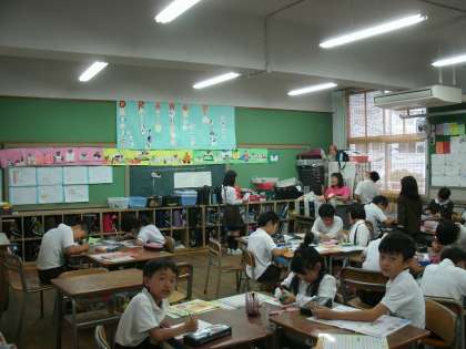 3年2組は、ローマ字の学習をしていました。自分の名前をローマ字で書き、ネームプレートを作っていました。