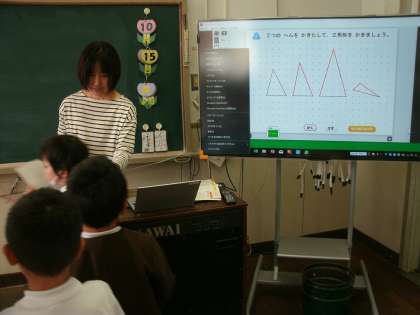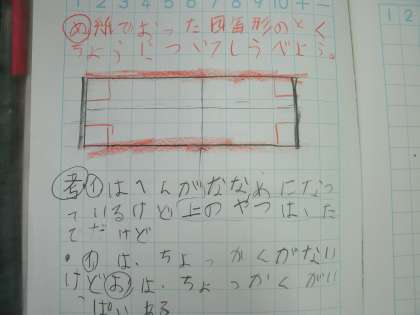 2組は、四角形にはどんなきまりがあるのかみんなで考えていました。
