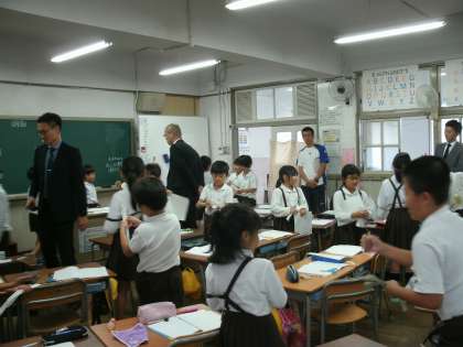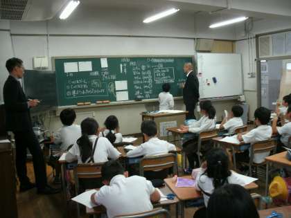 ゲストティーチャーをお招きして、3年2組で算数の模範授業を行いました。小数の導入の授業です。
