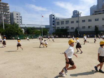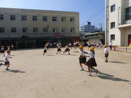 7月17日(木)今日もとても暑い日となりました。明日は終業式です。1学期最後の児童集会は、運動場でふえおにをしました。