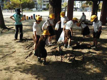 体育でドッジボールの練習をしました。そのあと当てたらポイントになるポイント制ドッジボールをしました。慣れてきたら正式なルールでゲームをしていきます。生活科では、「秋みつけ」の学習で落ち葉やどんぐり拾いをしました。磯路中央公園の大きな木の下を中心に、いっしょうけんめいにさがしていました。自然に興味をもつ一つのきっかけになってほしいと思います。