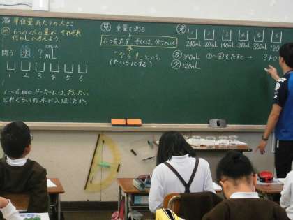 5年の算数では、平均の考え方について学習していました。この後、「単位量あたりの大きさ」に入っていきます。小学校算数の中でもかなり難しい単元になります。1回1回の授業にしっかり取り組み理解を深めてほしいと思います。