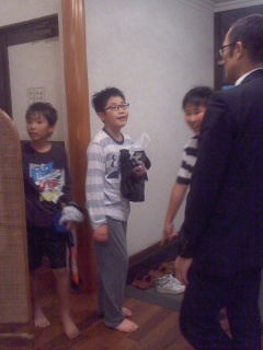 部屋に荷物を置いた後、放送の合図で避難訓練をしました。部屋に戻り、部屋ごとに入浴タイムです。