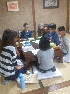 班長会議をしています。今日1日の振り返りと明日の予定の確認をします。