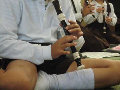 音楽で、リコーダー演奏の練習をしていました。休み時間や家で努力して練習している成果が十分に表れており、音色に気を付け、みんなと合わしながら演奏することができていました。