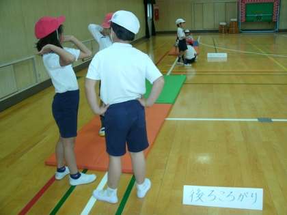 2年生は、体育館でマット運動をしていました。