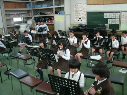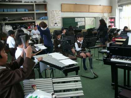 3年1組は、音楽室で合奏の練習をしていました。