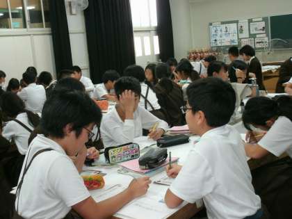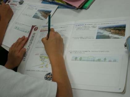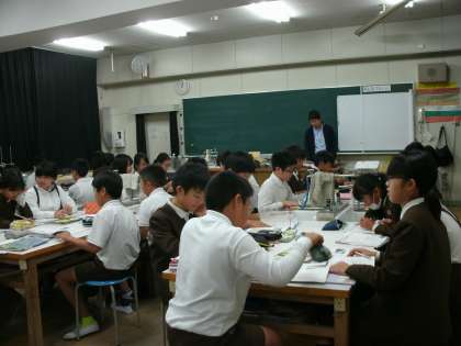 6年生は、理科室で「大地のつくりと変化」の学習をしていました。