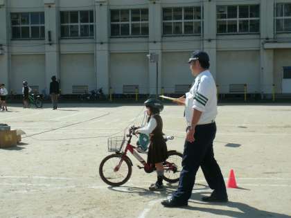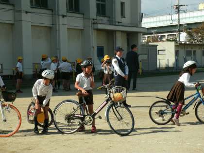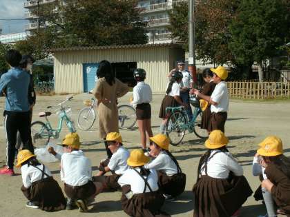 3・4年生は、自転車の安全な乗り方について実技指導を受けました。