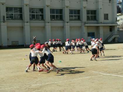 先頭の人は最後尾の人にタッチするという運動を楽しそうに行っていました。