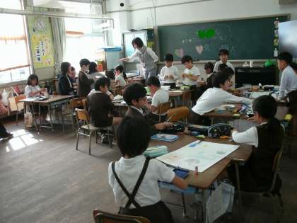 居留地交流で、難波特別支援学校の友だちと一緒に学習しました。
