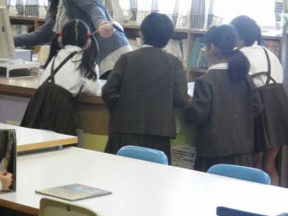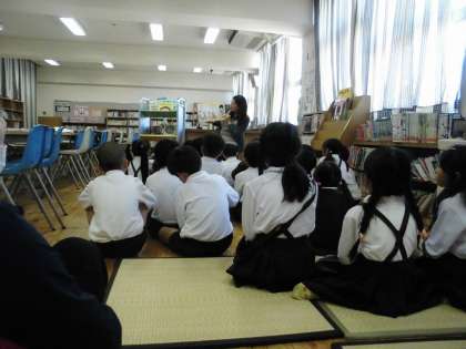 毎週木曜日は図書館補助員の方が、図書室に来てくださっています。本の貸し借りのお手伝いや読み聞かせをしていただいています。児童が本に興味を持つように考えてくれています。こどもたちが読書好きになってほしいです。