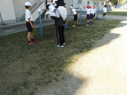 4年は体育で鉄棒に取り組んでいます。いろいろな技を先生に見てもらっていました。できるように努力する姿勢はすばらしいです。