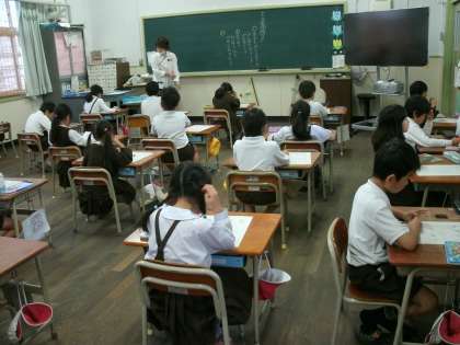 1年2組は、生活科のテストをしていました。