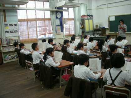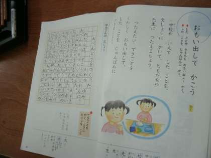 1年1組は、国語「おもい出してかこう」の学習をしていました。学校や家でしたことや気持ちを思い出して文章に書きます。友だちや先生に伝えます。