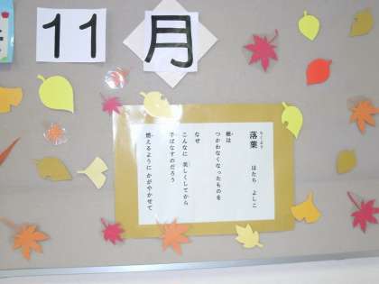 紹介が遅れましたが、図書室の壁面掲示が11月に替わっています。