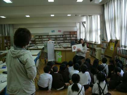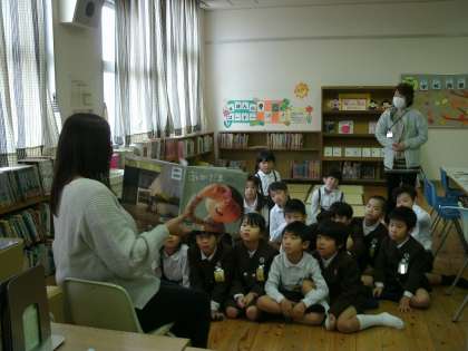 1年2組は、図書室で読書をしていました。