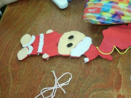 フェルトを使って針と糸でかわいい小物を仕上げていました。