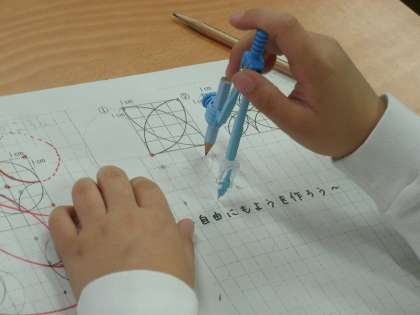 コンパスを使ってもようを描いていました。