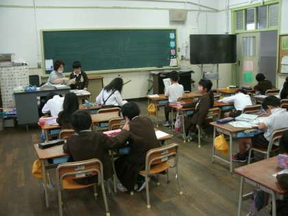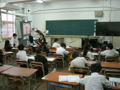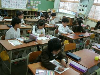 1年2組は、作品展の感想の手紙のしあげをしていました。